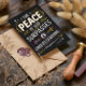 Uma almofada preta com uma citação da Bíblia em letra elegante. A citação é o foco central do design, complementada pela estética simples e elegante da almofada. A paz de Deus supera a compreensão.