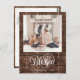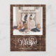 Envie cartões de natal personalizáveis e personalizados a amigos, colegas e familiares em cartões de estilo simples, chic, elegantes e modernos de design fotofestivo, minimalista natural! Uma bela caligrafia de "Abençoados" quadros na parte inferior da sua foto na frente. Abaixo, a caligrafia apresenta sua mensagem de saudação personalizada do nome da sua família na tipografia moderna. Inverter para revelar uma bela árvore marrom sobre o fundo da madeira marrom-escuro rústica.