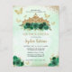 Esmeralda Floral Moderna Verde Dourada Tiara Borboleta Esponja Glitter Aniversário Quinceañera Convite