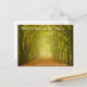 Cartão-postal mostrando esperança com luz no final de um túnel por faia ao longo de uma pista pela floresta.