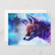 Uma raposa alerta passa por uma nebulosa de nuvens mágicas, azuis e roxas.
