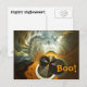 Uma fractal laranja, marrom, preta e branca sugerindo espíritos e fantasmas de Halloween. O texto "Boo!" também aparece em laranja.