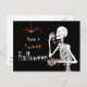 Cartão Postal Esqueleto Comendo Doces de Halloween (com Aranha)