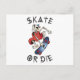 Design assustador e divertido de Halloween com um esqueleto patinando e a citação "Skate or die". Uma combinação perfeita para a festa de Halloween, bem como para uso diário.