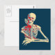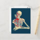 Feliz esqueleto sorridente com sua mão bonitinha descansando no queixo, em cores retrógradas.