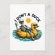 Este cartão mostra um esqueleto brincalhão navegando em um barco em forma de pato, acompanhado da declaração assombrosa "Eu não sou um pato".