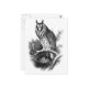 Esta é uma imagem gravada ao estilo da vintage de um adulto de Coruja Longa-de-Orelha empoleirado em um galho de pinheiros. Abaixo do pássaro grande, quatro pequenas corujas escondem-se num ninho dentro da árvore. Outra coruja adulta está empoleirada no fundo. Este esboço original de uma coruja de orelha longa faz uma ideia de presente de excelente para qualquer um que ama corujas! Você pode personalizar totalmente este presente! Mova o design, mude a cor ou o estilo, adicione o seu próprio texto ou imagens — faça dele o seu!