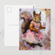 Cartão Postal Esquilo Adorável num Vestido Rosa com uma Bebida