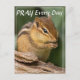 Um esquilo fofo é retratado como se estivesse em oração em um galho de árvore caído.