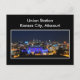 A Estação Sindical de Kansas City comemora a vitória do time de beisebol da cidade com iluminação azul. Aberta em 1914, a Estação Union serve Kansas City, Missouri, e a área metropolitana circundante. Em 1985, mas foi restaurado, reabrindo em 1999 como uma série de museus e outras atrações públicas. Em 2002, a Union Station viu o seu regresso como uma estação de comboios, quando a Amtrak começou a prestar serviços de transporte público e se tornou, desde então, a segunda estação de comboios mais movimentada do Missouri. A fonte, nomeada para Henry Wollman Bloch, foi um presente para a cidade em nome do cofundador da H&R Block, Inc. Ela apresenta 232 jatos organizados em três anéis concêntricos dentro de uma elipse de granito negro. Uma fina camada de água no granito plano cria um espelho para refletir a arquitetura monumental de ambos os lados. Um computador coreografa um padrão de exibição em constante mudança. A cada hora e meia, um "show de alto nível" de cinco minutos apresenta uma celebração da água em movimento. A fonte foi projetada por WET Design, os designers das fontes Bellagio em Las Vegas.