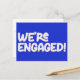 Anuncie sua noivado com um toque de encanto retrorreflector usando este cartão postal "Estamos Envolvidos" com tipografia branca divertida em um fundo azul moderno. O design inspirado na safra traz uma vibração alegre e nostálgica, enquanto o azul ousado acrescenta uma reviravolta contemporânea. Perfeito para casais que adoram uma maneira única e divertida de compartilhar suas grandes notícias, isso é impresso em uma opção de cartão postal amigável, fazer na moda e barato por enviar seu anúncio de forma elegante.