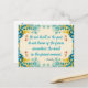 Cartão postal inspiracional com quadro floral com flores e borboletas. Citação de Buda. Na frente lê-se: Não se incomode no passado, não sonhe com o futuro, concentre a mente no momento presente. ~ Buddha Back lê: Esteja presente. Personalize como quiser ou saia como está.