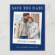 Casal de estilo de câmara retrorreflector instantâneo moderno Foto Salva a data Cartão-postal do Noivado fotográfico - Azul Marinho