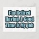 Engraçado, engraçado, citando design de texto em azul e preto que apresenta a humorística aposentadoria dizendo: "Estou aposentado, me divertindo é meu trabalho."