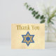 Exibindo uma estrela azul e dourada de David em um fundo dourado, "Obrigado" é mostrado em letras grandes de ouro. A parte traseira apresenta um design amarelo claro com fonte de ouro. Faça seu pedido agora. Dourado fundo: Michel Müller Star of David: Sonya DeHart Design http://www.sonyadehartdesign.com | http://www.sonyadehartdesign.etsy.com