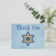 Com uma adorável Estrela de David Azul e Dourada em exibição, este cartão postal de agradecimento apresenta um adorável fundo azul com "Obrigado" escrito em letras azuis negrito. Compre seus cartões de agradecimento hoje mesmo!