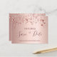 Uma cinta e moda Salve a placa Date para uma festa de aniversário 50th (ou qualquer idade). Um fundo branco, cor-de-rosa feminino, rosa dourado falso, metálico, decorado com estrelas de ouro rosa. Modelos para uma data e nome/idade 50. Letras rosa escuras de cor dourada. O texto: Salvar a Data é gravado com um script de estilo com letra de tendência grande. Dica: Se você não quiser que pareça um cartão postal, clique em personalizar, vá para o verso e remova o divisor e o carimbo de posto.