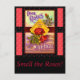 Deco de arte em estilo, esta ilustração é de uma etiqueta de Witch Hazel antiga com um quadro de ornamentado e rosas vermelhas.