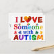 Citação inspiradora de "Eu amo alguém com AUTISM" e um belo coração com quebra-cabeça autistas para apoiar crianças autistas e suas famílias por um futuro brilhante.