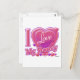Cartão Postal Eu Amo Minha Abelha rosa/roxo - coração