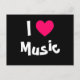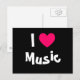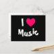"Eu Amo Música" com uma fonte funky e design de coração.