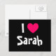 "I Love Sarah", design de coração com uma reviravolta divertida e única.