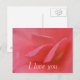 Cartão postal de Eu Amo Você com pétalas de rosa rosa. Simples e direto; deixe-os saber como você se sente. Perfeito para o dia dos namorados