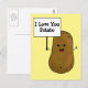 Envie a alguém uma mensagem com este doce cartão postal Eu Amo Você, Batata. Uma adorável batata marrom de desenho animado com olhinhos pretos e um grande sorriso feliz. Ele está segurando um sinal que diz Eu Amo Você Batata, este é um modelo e pode ser usado para alterar o estilo da fonte, cor e tamanho. Ou até mesmo mudar as palavras para sua própria mensagem.