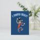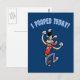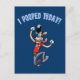 Um cão de desenho animado retrô no salto comemorativo, com, "Eu fiz cocô hoje!" em caracteres arquivados acima.