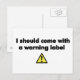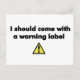 Cartão Postal Eu deveria vir com um rótulo de aviso