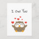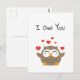 Pequena ilustração fofa e feliz com corações vermelhos quentes voando por aí. Um pássaro engraçado com cores castanho claro e com patas amarelas brilhantes. Esta coruja traz felicidade e amor, e gosta de animá-lo ou enviar os melhores desejos a alguém que você gosta. Você também pode personalizar o plano de fundo para suas necessidades.