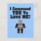 Quem poderia resistir a este adorável bot? Este design engraçado de robô geek apresenta a hilária mensagem "Eu te recomendo a me amar!" com um robô geek bonito e exigente com raiva e coração prateado! Este design de humor robô é o presente perfeito para comprar para o seu outro significativo em dia de os namorados ou qualquer outra ocasião romântica.