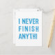 Cartão Postal Eu nunca termino nada, palavra arte, design de tex