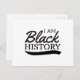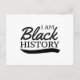 O texto "I AM Black History" está escrito numa letra elegante e distinta, que contrasta com o fundo negro e pega o olho. O design é simples, mas eficaz, transmitindo uma mensagem de orgulho e conscientização.