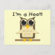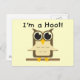 Uma coruja e um texto bonitinho que diz "Eu sou um Hoot!" em camisetas, crianças, T-shirts, fatos-chave, canecas, cartões, autocolantes e outros artigos.