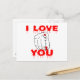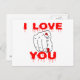 Eu te amo escrevendo com letras vermelhas que pingam sangue e um desenho de linha de uma mão feminina com um dedo indicador apontando para o espectador. Por diversão e Halloween