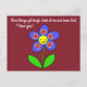 Este é um cartão-postal de impressão de flor azul que sorri e também diz: "Quando as coisas ficam difíceis, olha para mim e sabe que eu te amo!" escrito em letras cursivas de cor branca e bonita.