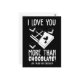 O texto humor de chocolate diz: "Eu te amo mais que chocolate e eu realmente amo chocolate". Gráfico branco.