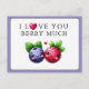 Um cartão postal encantador com um doce mirtilo e morango com a doce mensagem "Eu te amo muito." Perfeito por enviar uma mensagem divertida e sincera a alguém especial. Este cartão postal adorável é uma maneira divertida de expressar seu amor e iluminar o dia de alguém.