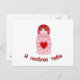Uma boneca russa, Matryoshka, com corações e as palavras "Eu te amo" em letras russas