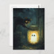 Uma cena divertida do Dia das Bruxas com um fantasma preso num pote por um gato preto