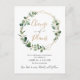 Esta elegante e personalizável carta de Alteração de Planos apresenta um quadro de ouro geométrico adornado com as folhas de eucalipto de cor d'água e foi emparelhado com uma caligrafia caprírica e uma letra de serifa clássica em ouro e cinza, com um cartão de posto de volta. Para fazer alterações avançadas, selecione a opção "Clique para personalizar mais" em Personalizar este modelo.