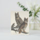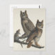 Duas corujas de excelente em um galho vintage, ilustração da história natural. Os seus olhos intensos e assustadores vão segui-lo. Adicione texto ao uso para um evento de Halloween.