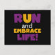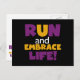 Se você gosta de correr, correr 5Ks, 10Ks, meia maratona, ou maratonas, você vai adorar este design de texto colorido em roxo e amarelo que lê Run and Embrace Life! Corra e Abraça Camisas de Vida, capuzes, ímãs, botões, cartões, adesivos, correntes-chave e muitos outros itens para corredores que adoram um design brilhante e colorido!