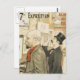 Poster francês de uma exposição de arte em 1894 mostrando 2 homens examinando a arte em uma parede. Um está vestindo um cachecol vermelho em volta do pescoço e o outro está vestindo um chapéu preto inclinado de volta em sua cabeça