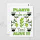 Cartão-postal do Planta Lover projetado por Nisha Prabhu CuteHomeGifts. Plantas internas e cacto cactos de plantas comuns, com manchas verdes, bonitas, com plantas desérticas, com uma bela citação: 'Plantas me fazem sentir viva'. Presentes perfeitos para amantes de plantas loucas.