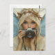 Todos os direitos reservados © Angelandspot Uma adorável fada loira com asas azuis segura a sua câmara pronta para tirar uma fotografia