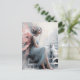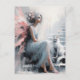 Uma fada se senta nas escadas com seu gato branco uma pintura em cores mínimas