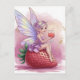 Cartão Postal Fada com um copo de morango fantasia