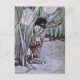 Fada bonita com óculos e uma pena no cabelo escondida num jardim de tulipas. Linda ilustração de Arthur Rackham. "Quando ouviu a voz de Peter, ele se alarmou atrás de uma tulipa." Do romance "Peter Pan in Kensington Gardens", um romance escrito por J. M. Barrie, publicado em 1906.